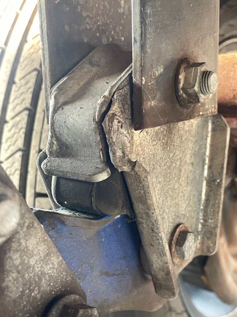 Any time we are packing up to leave, at regular intervals during longer stays, and I think sometimes because he’s bored, Vic is often under the trailer inspecting things. And it’s a good thing, too! There was that one time the bracket holding the fresh water tank had popped loose. Another time there was a bolt stuck in one of the tires. And sure enough, as we were getting ready to leave Carlsbad he noticed a crack in our suspension mechanism. Not to get all technical, but that’s the thing between the two axles at the tires that keeps things bouncy. Sort of like shock absorbers. And when you live in a 32′ long box that hits all the same potholes your truck does – you want these things to work reliably. This was a thing that needed fixing.
