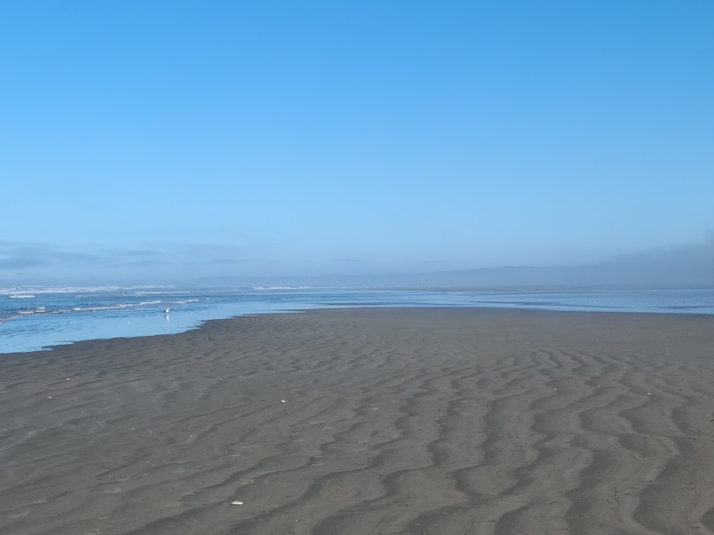 Back in to the office. Mary pulled a magic trick and was able to get us into one of the long-term spots that was vacant until Friday. Five days was a heck of a lot more than I could have hoped for. And it was a snazzy, landscaped spot with wonderful shade trees and a huge “yard!” We held out hope that the incoming reservation would cancel and we could stay the weekend, but nope. That didn’t happen. In the meantime, I’d gone back to the drawing board, between foggy beach walks and breezy naps. By mid-week, we had already decided that even if a different space in the park opened up, if we had to pack up and move, we might as well move on.